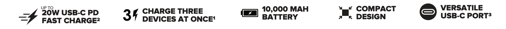 - Featuring a USB-C PD 20W output, allowing you to charge your devices at the fastest speed possible — In just 30 minutes, you can get up to 50% battery on compatible devices, saving you time and keeping you productive.